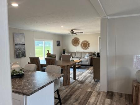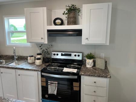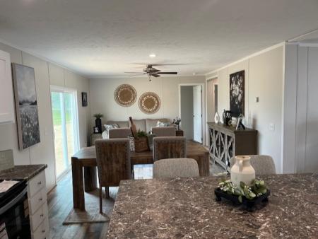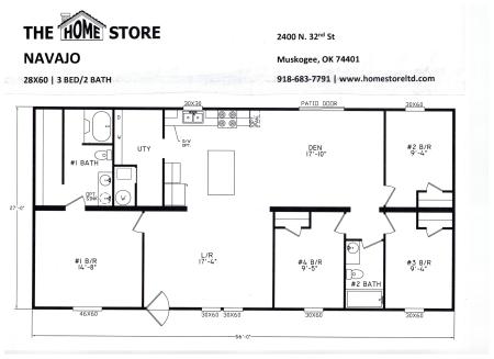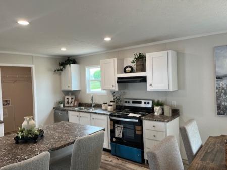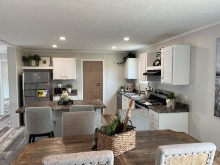 The NAVAJO is a 4 bedroom/ 2 bath doublewide featuring an open floor plan with a living area and den and a rear patio door. The well-designed kitchen offers finished overhead cabinets with soft-close concealed hinges. There is a rolled-edge kitchen island and stainless steel appliances.